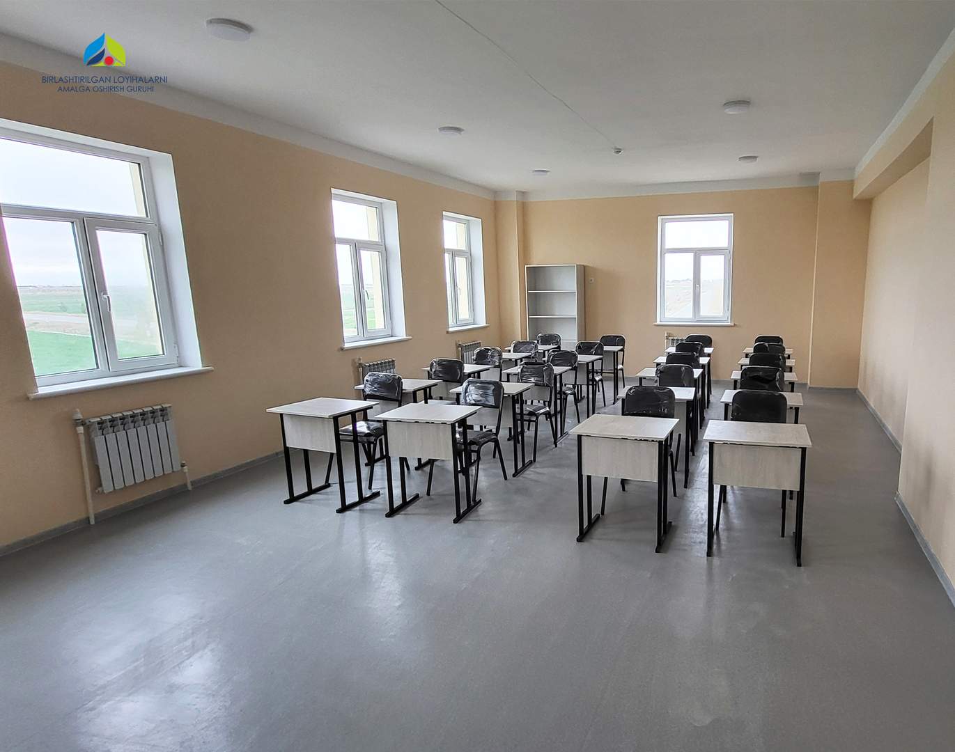 The contractor, Amirshoh Mohir Quruvchi LLC, is currently focused on furnishing the building, completing interior finishing work, and carrying out landscaping and exterior improvements.